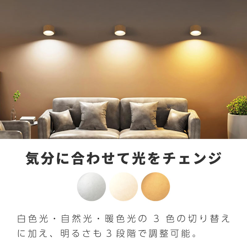 白色・自然光・暖色の3色調色と、