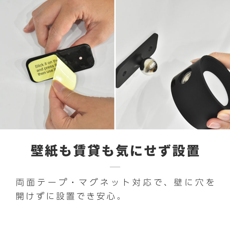 マグネット式で角度も向きも自由自在。