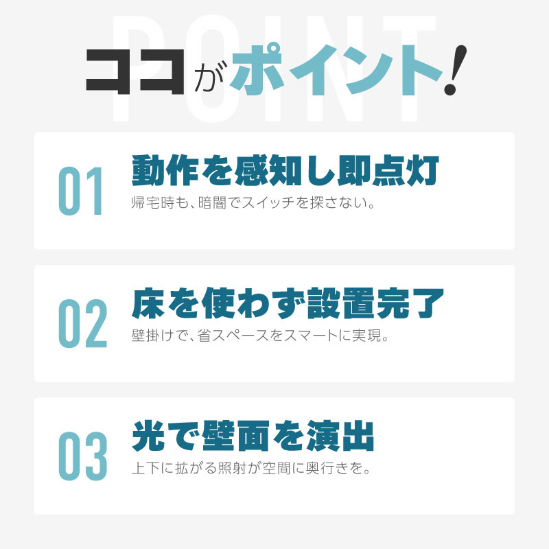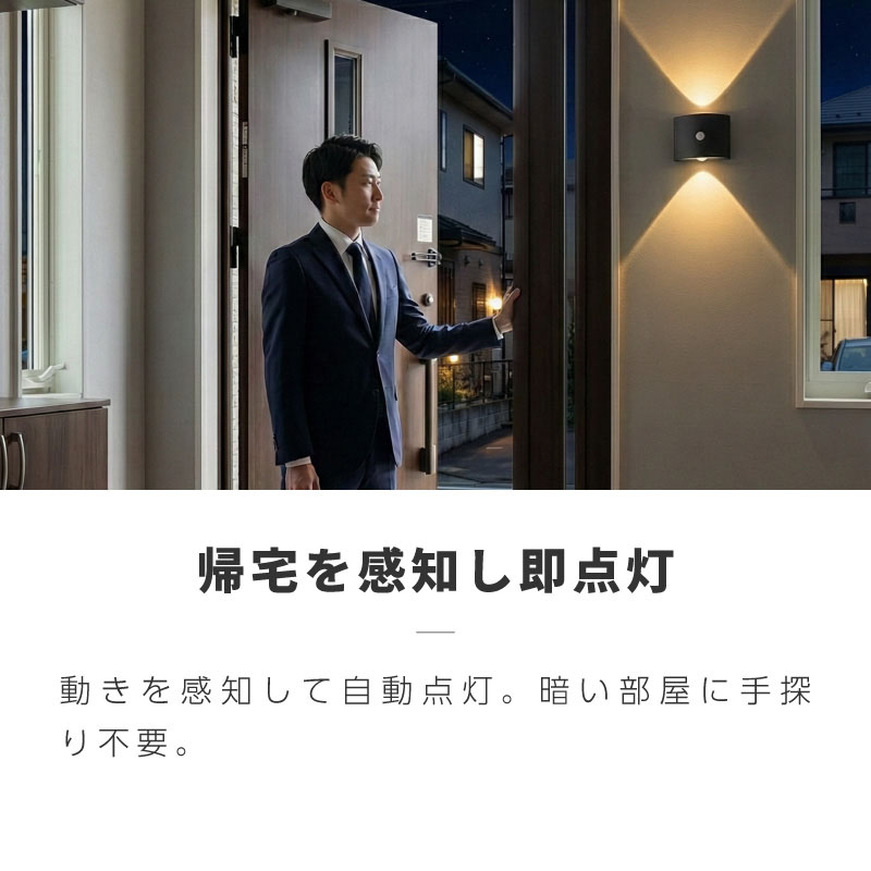 荷物を持っていても近づくだけで点灯し、玄関や廊下、階段などの室内をやさしく照らします。