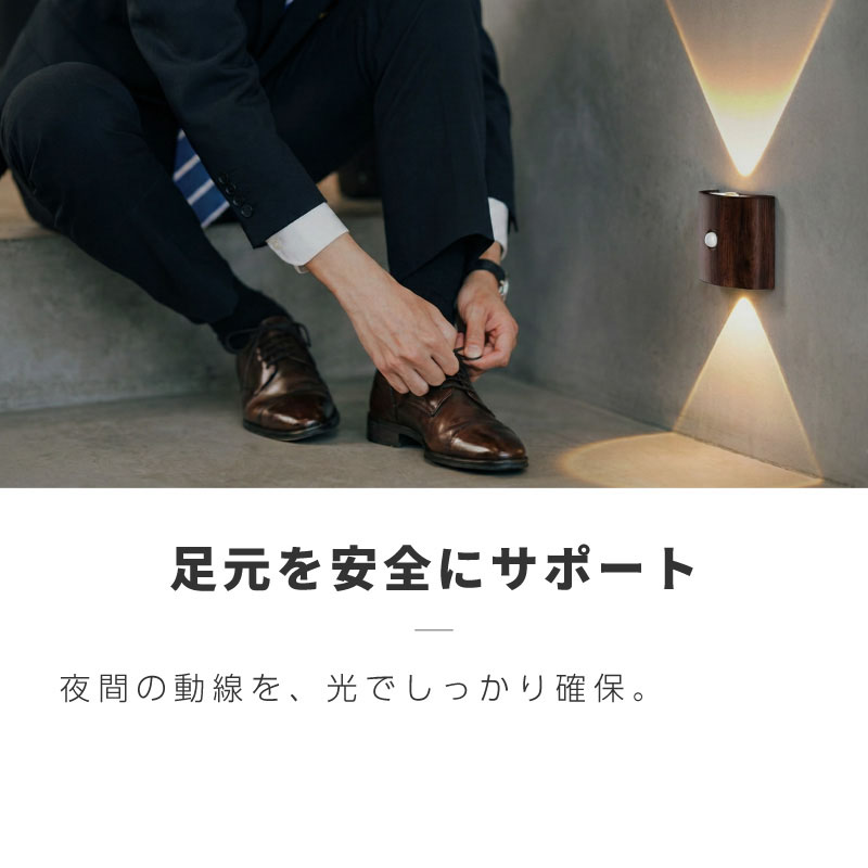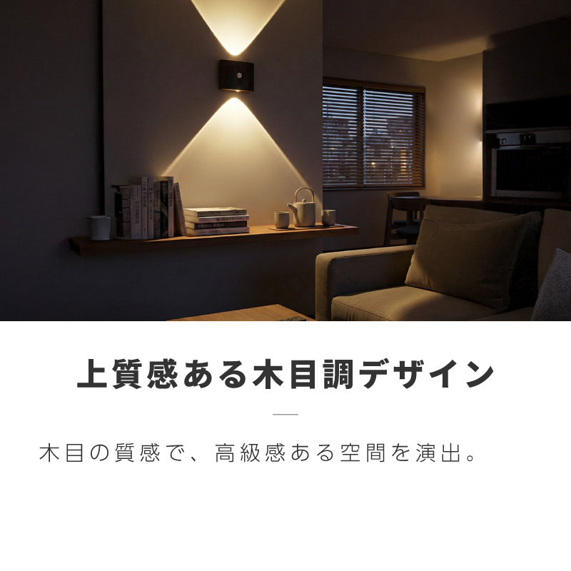 ウォールライト 人感センサーライト LED 室内 屋内 充電式 USB 工事不要 コードレス おしゃれ 木目 壁掛けライト