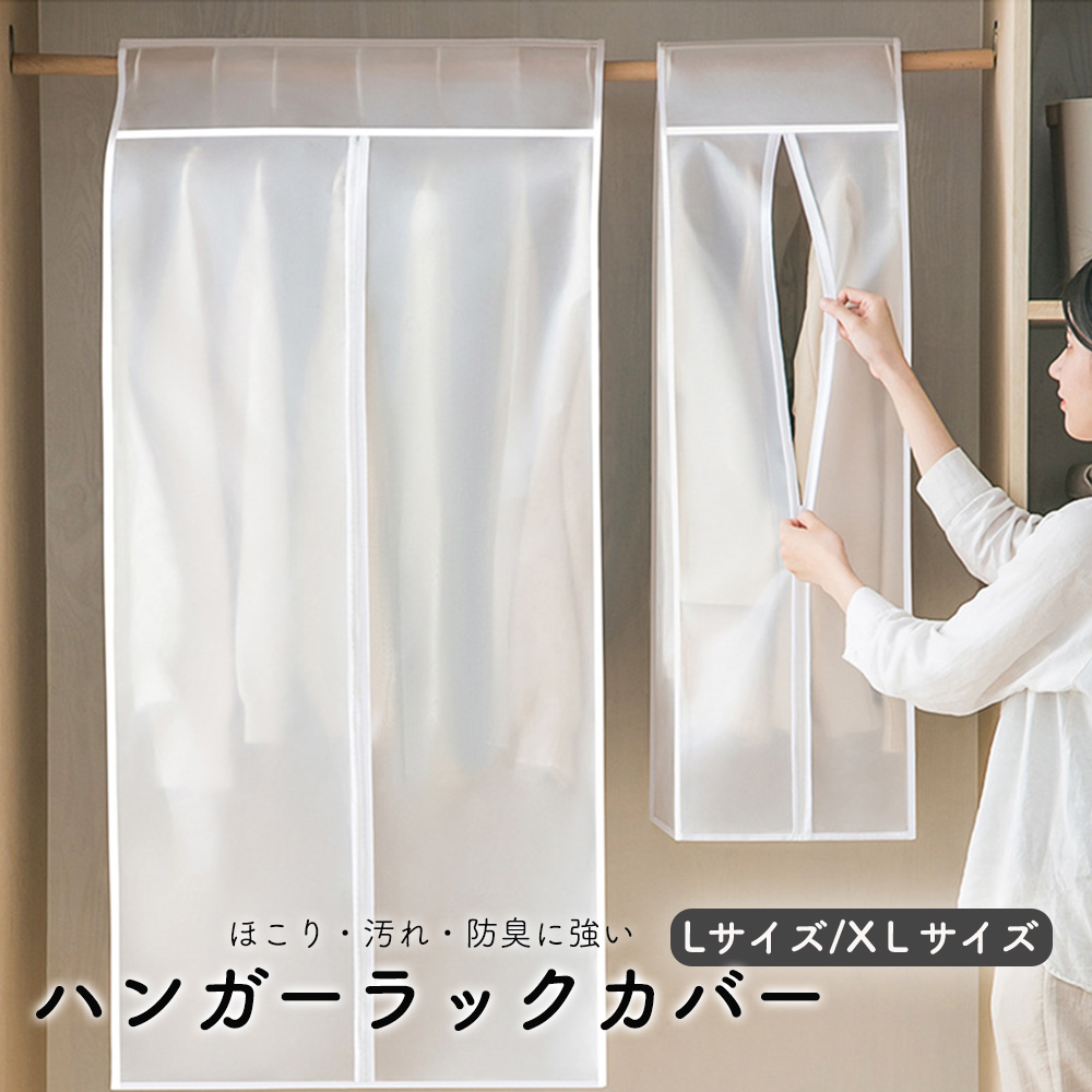ハンガーラックカバー 衣類カバー 洋服カバー ファスナー ロング 衣類収納カバー パイプハンガーラック カバー ホコリ 花粉 害虫 防止 汚れ防止 PM2.5 防臭効果 衣類収納 無地 半透明 簡単取り付け マジックテープ 繰返し使える PEVA