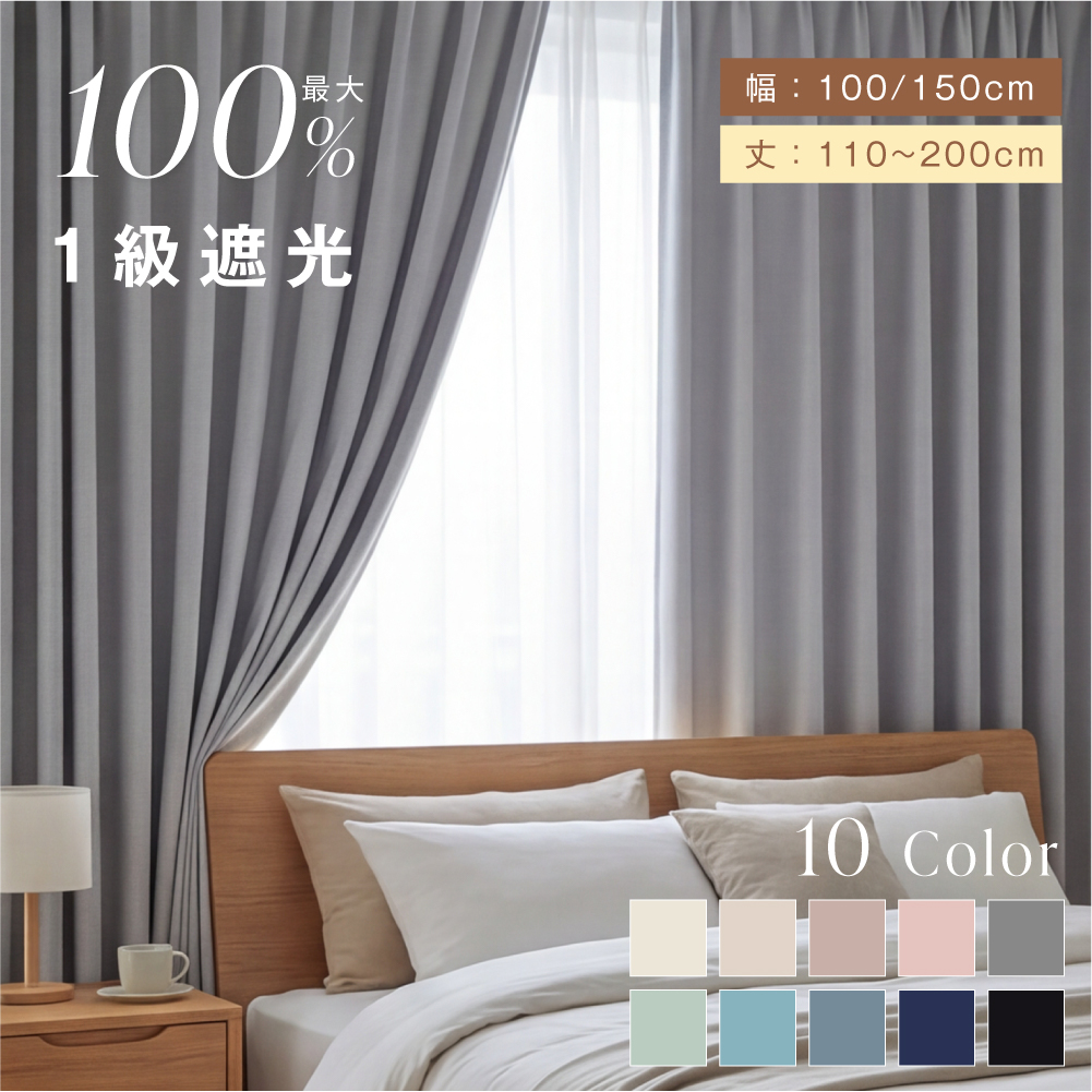 【「1級遮光」昼間でも真っ暗!】カーテン裏側に特殊な樹脂コーティング加工の多層構造を施すことで、光を一切通しません。夜勤明けの昼寝や、ホームシアターを楽しみたい方に最適です。夜間の光漏れも防ぎ、朝までぐっすり快眠をサポートします。