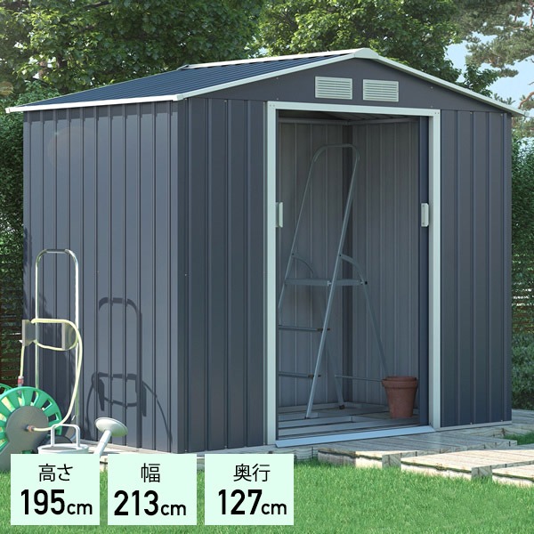 物置 高さ195cm幅213cm奥行127cm 屋外 おしゃれ 小屋 約0.7坪メタルシェッド 002 ダークグレー&ベージュ 大型 収納庫 ベランダ収納庫 スチール物置 ガーデン