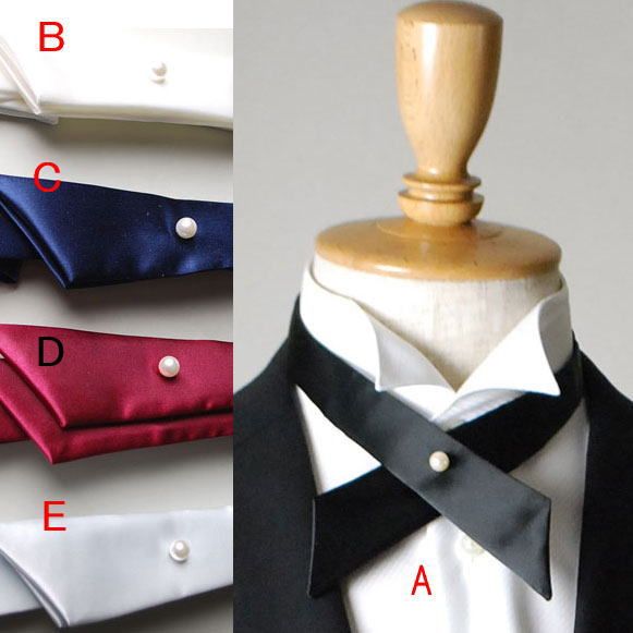 | 夜の正礼装タキシード用のクロスタイです。 ●品質:アセテート100% ●柄:無地 ●カラー:5基本色・ブラック/ホワイト/ブルー/エンジ/シルバーグレー