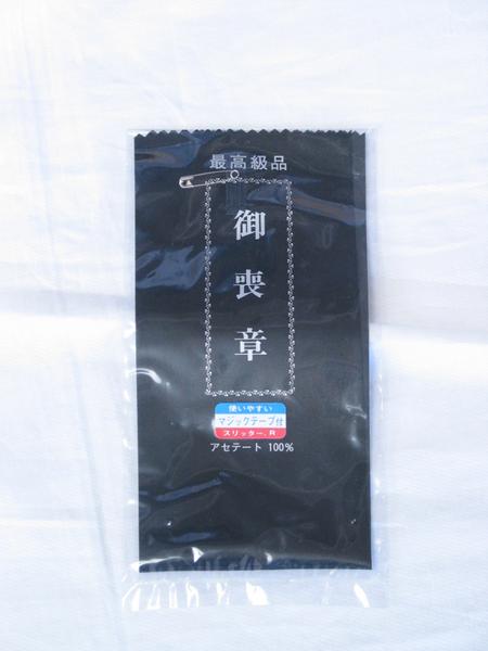 お葬式などのお悲しみのフォーマルスタイルにしっかり決まる、スタイリッシュな最高級の御喪章。