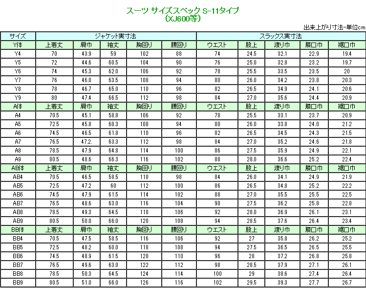 [6]170cm 〜175cm | Y体6号 | BB体6号 |