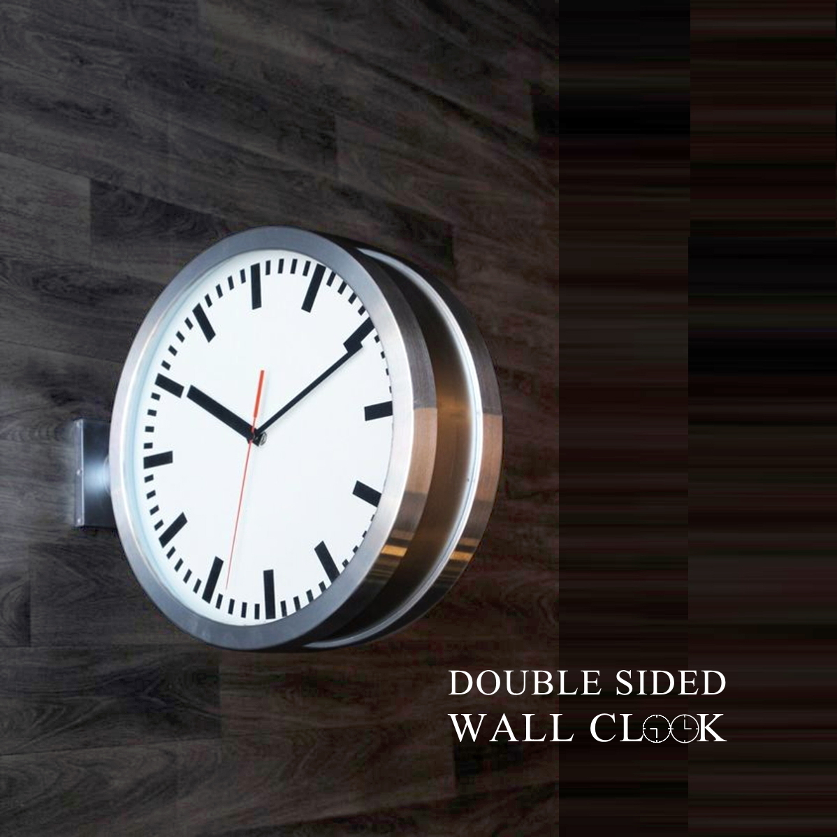 掛け時計 おしゃれ 壁掛け 時計 両面時計 モダン インダストリアル ミニマル デザイン メタル 金属製 ブラック シルバー 送料無料 GMS02281