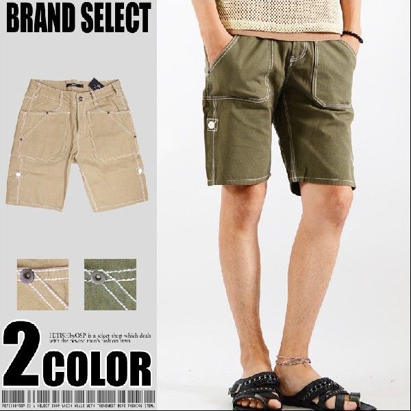 【閉店セール】ショートパンツ ステッチ ハーフパンツ メンズ ショーツ ミリタリー カーキ ベージュ ショートパンツ 短パン 半パン ネコポス M