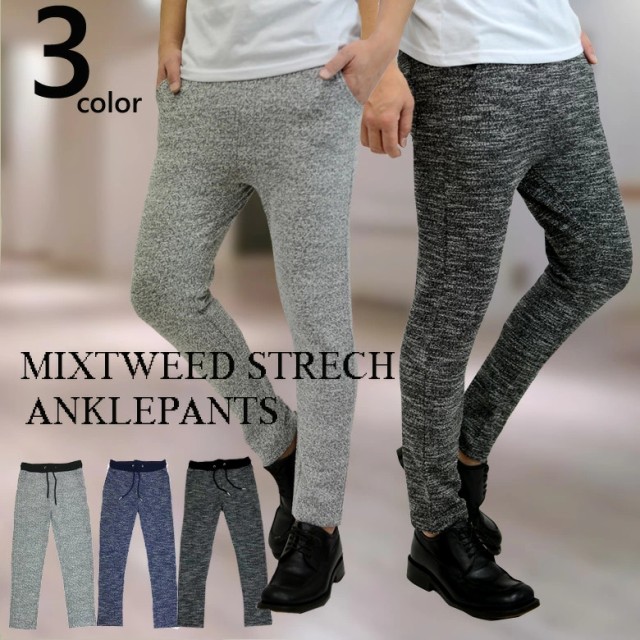 【閉店セール】スリムパンツ アンクルパンツ スキニーパンツ ミックスツイード ストレッチアンクルイージーパンツ 細身 タイト くるぶし丈 部屋着