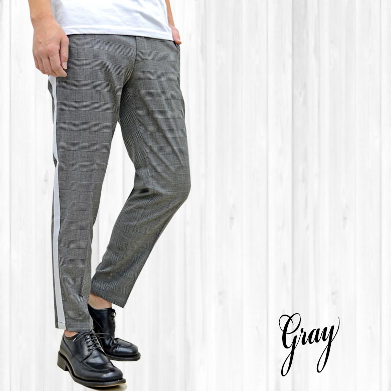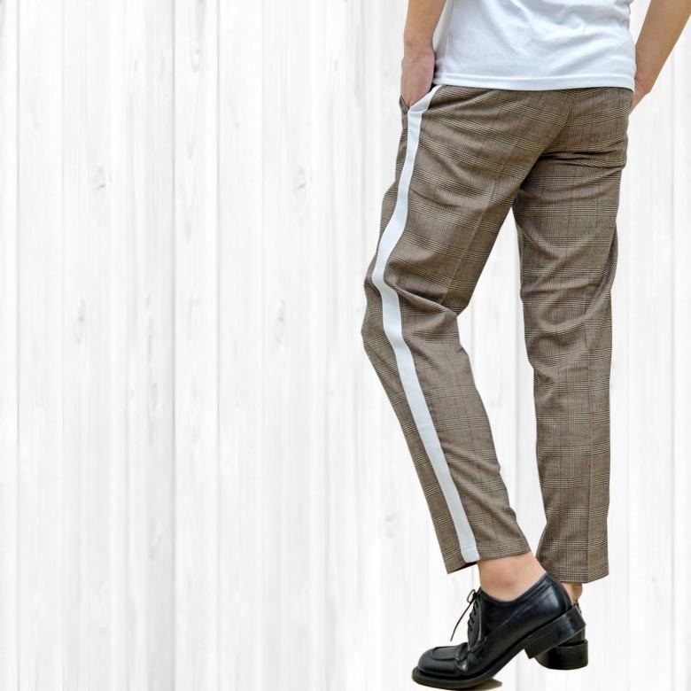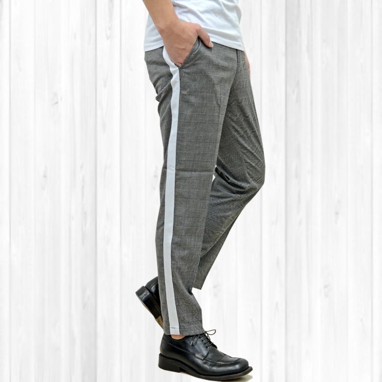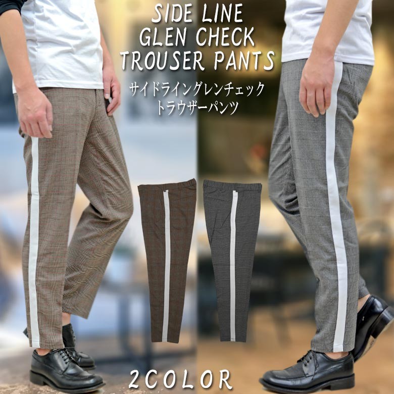 【閉店セール】グレンチェック サイドライン テーパード トラウザーパンツ メンズ ラインパンツ トラウザーパンツ サイドライン チェック M L LL