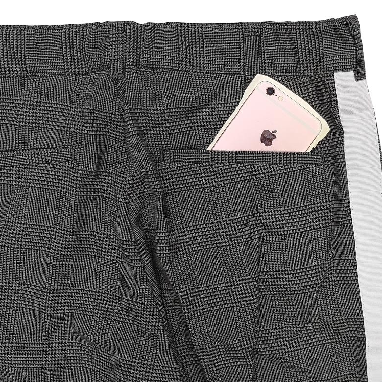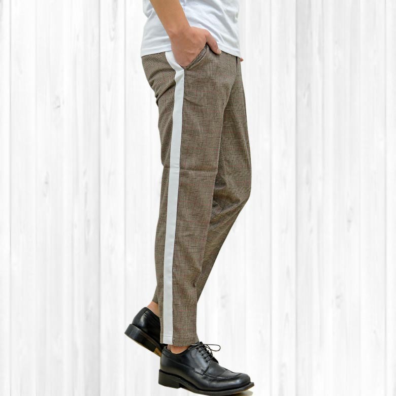 トレンドのディティールを落とし込んだサイドライン&グレンチェックテーパードパンツ。