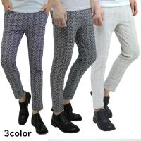 【閉店セール】モザイク柄 アンクル丈 テーパードパンツ パイル アンクルパンツ パイル地 キレイめ お洒落 おしゃれ 薄手 パイル M L LL グレー