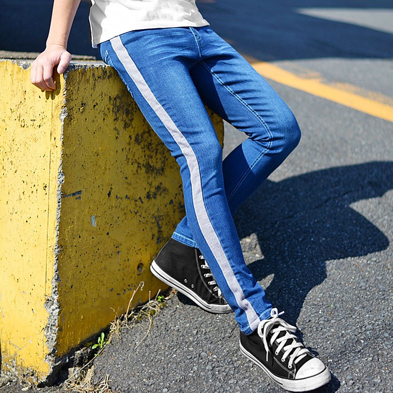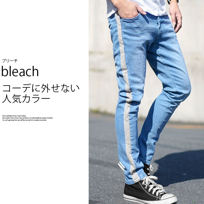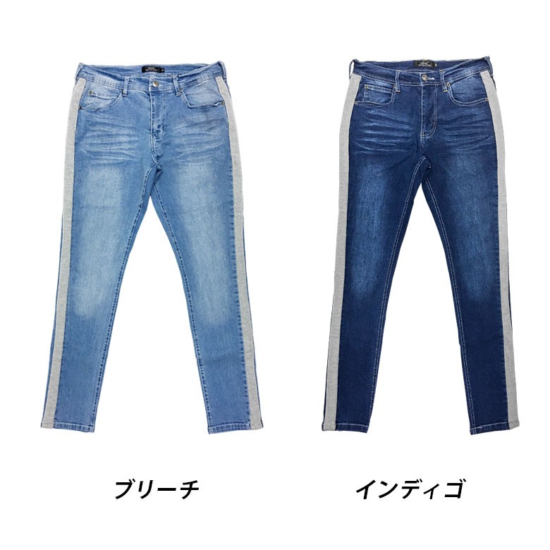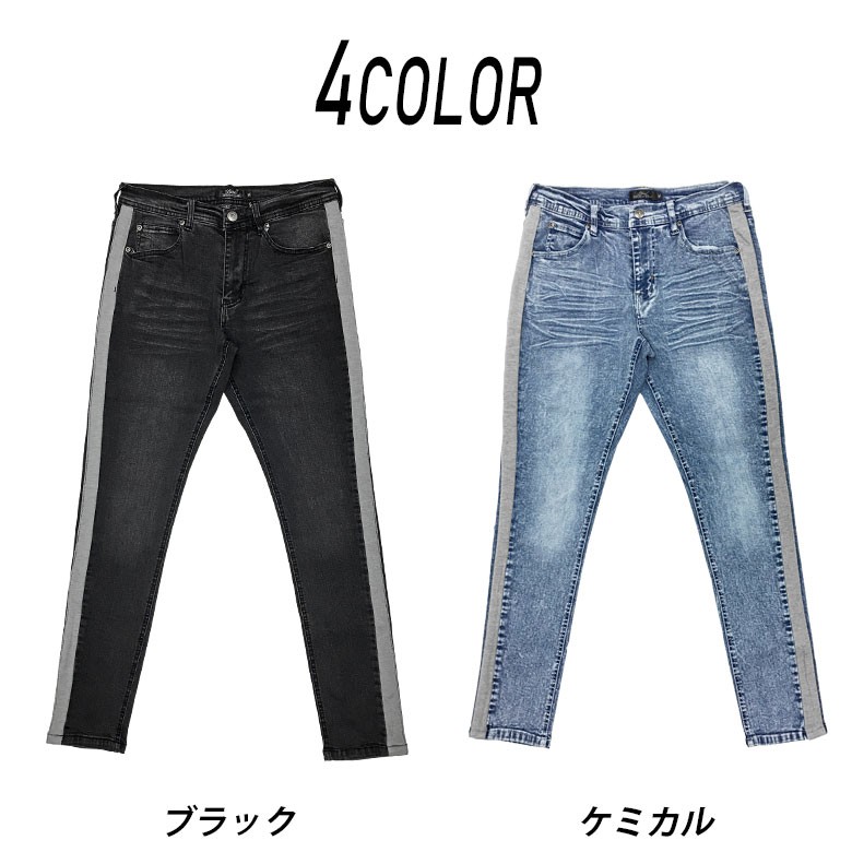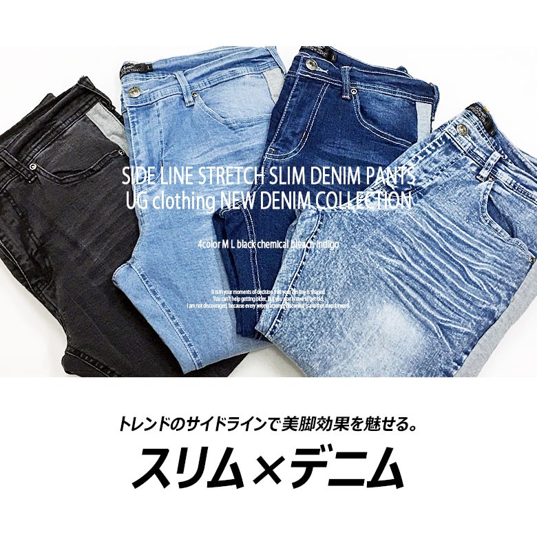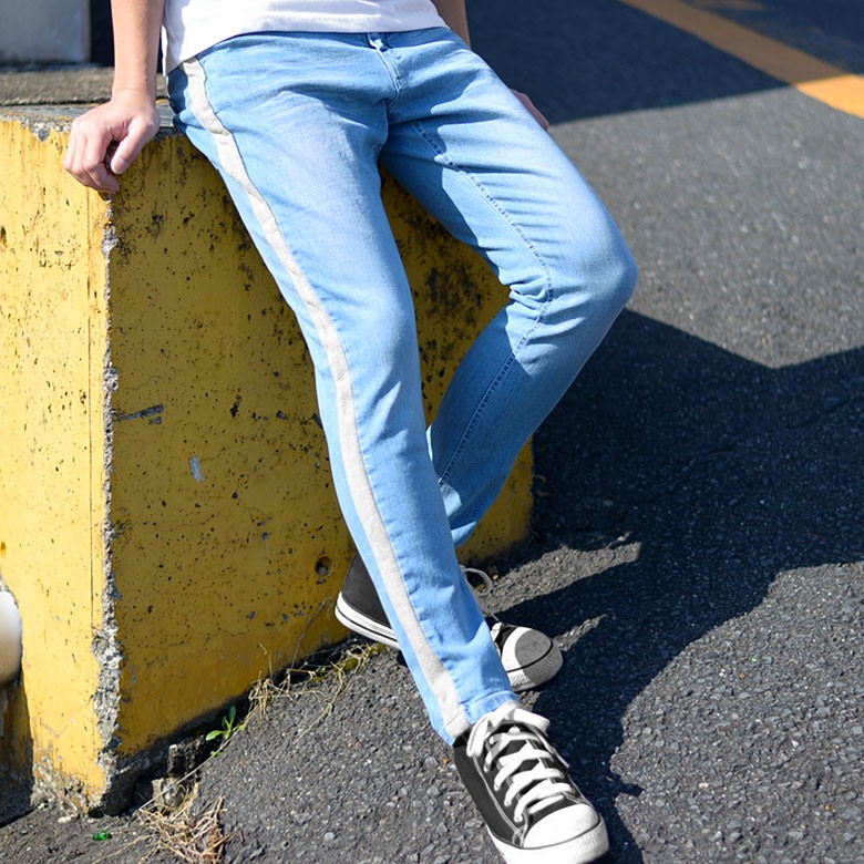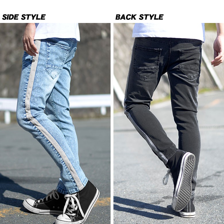 【閉店セール】サイドラインストレッチスキニーデニム スキニーデニム ストレッチデニム サイドライン テーパード スリムデニム 伸縮 M L
