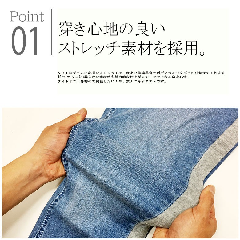 伸縮性のあるストレッチ素材でぴたっと穿きこなせ、