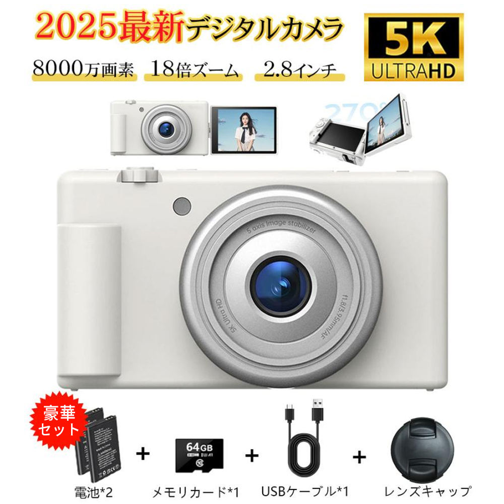 【5K新発売】正規品 デジカメ デジタルカメラ 5K 8000万画素 動画撮影 2.8インチ 18倍ズーム 270度回転可能 コンパクト ビデオカメラ Vlog 卒業修学旅行 初心者