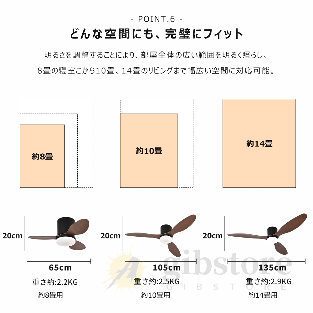直径65cm*H20cm 適用空間 ~8畳 重さ約:2.2KG