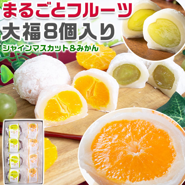 | 商品名 | まるごとフルーツ大福 8個入り (シャインマスカット大福4個、みかん大福4個 合計8個入り) フルーツ大福 ギフト 和菓子 新杵堂 プレゼント 贈物 スイーツ 母の日や父の日 送料無料 |