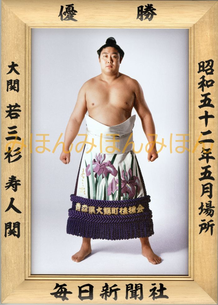 昭和52(1977)年5月場所で初優勝した、大関 若三杉寿人関の優勝額ミニチュア版です。