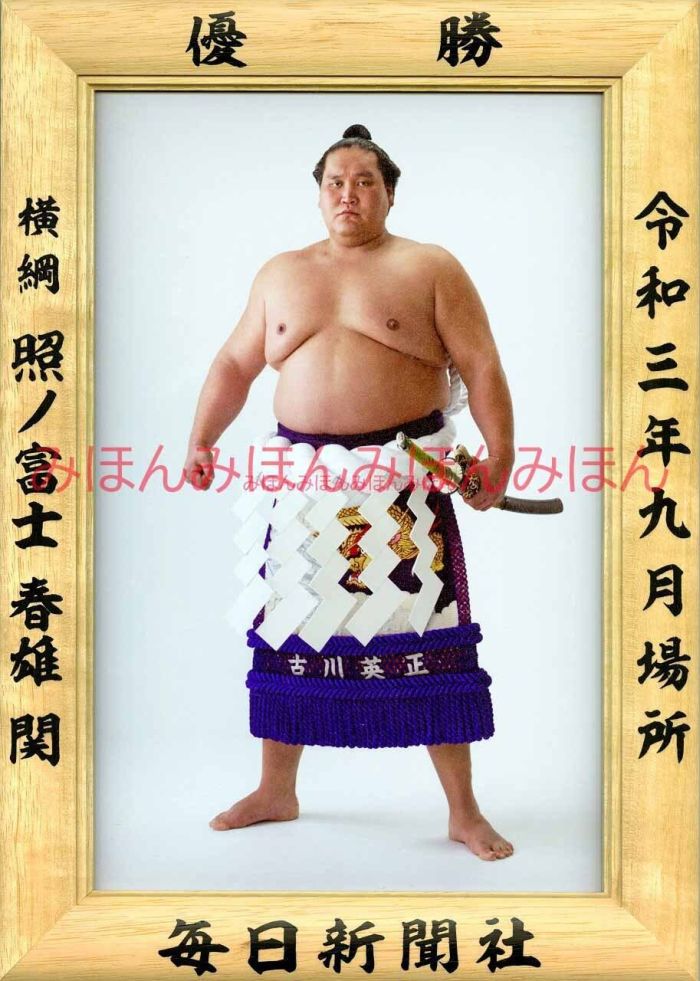 令和3(2021)年9月場所で優勝(5回目)した、横綱 照ノ富士春雄関の優勝ミニ額です。