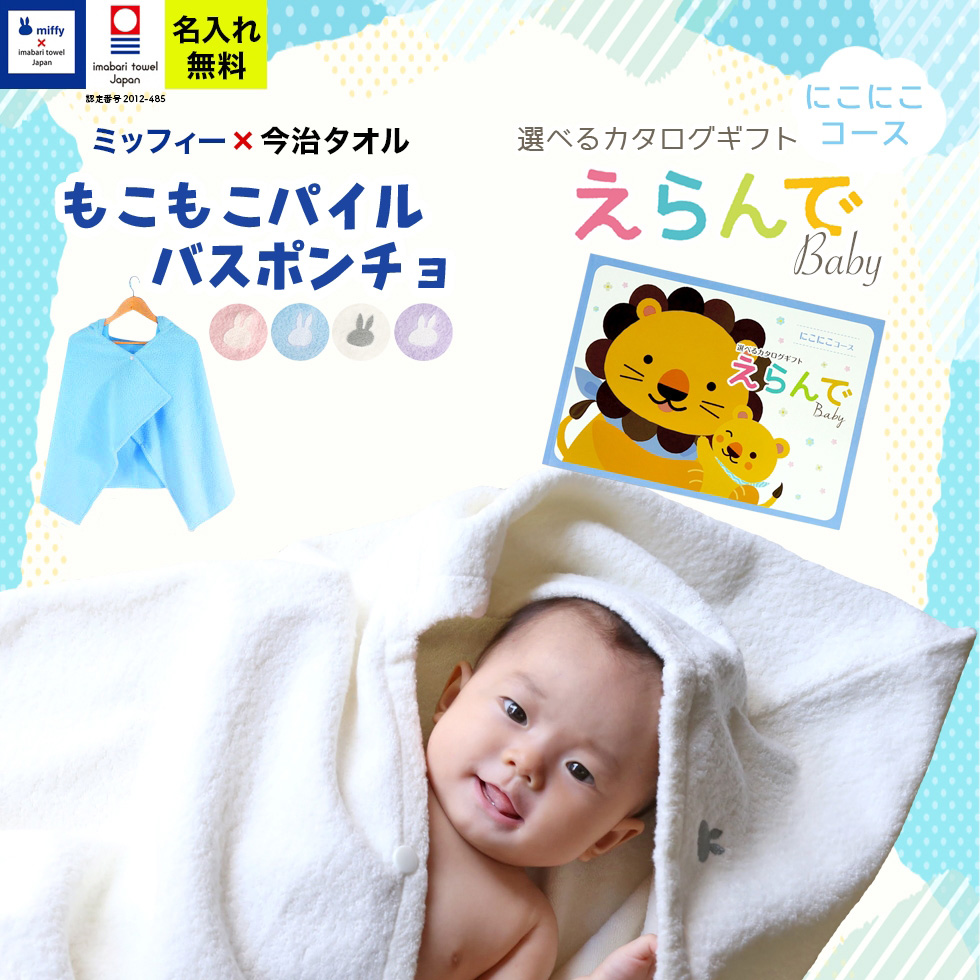 出産祝い カタログギフト メッセージカード 付き 名入れ 名前入り えらんでBaby にこにこコース& 今治タオルミッフィー ポンチョセット