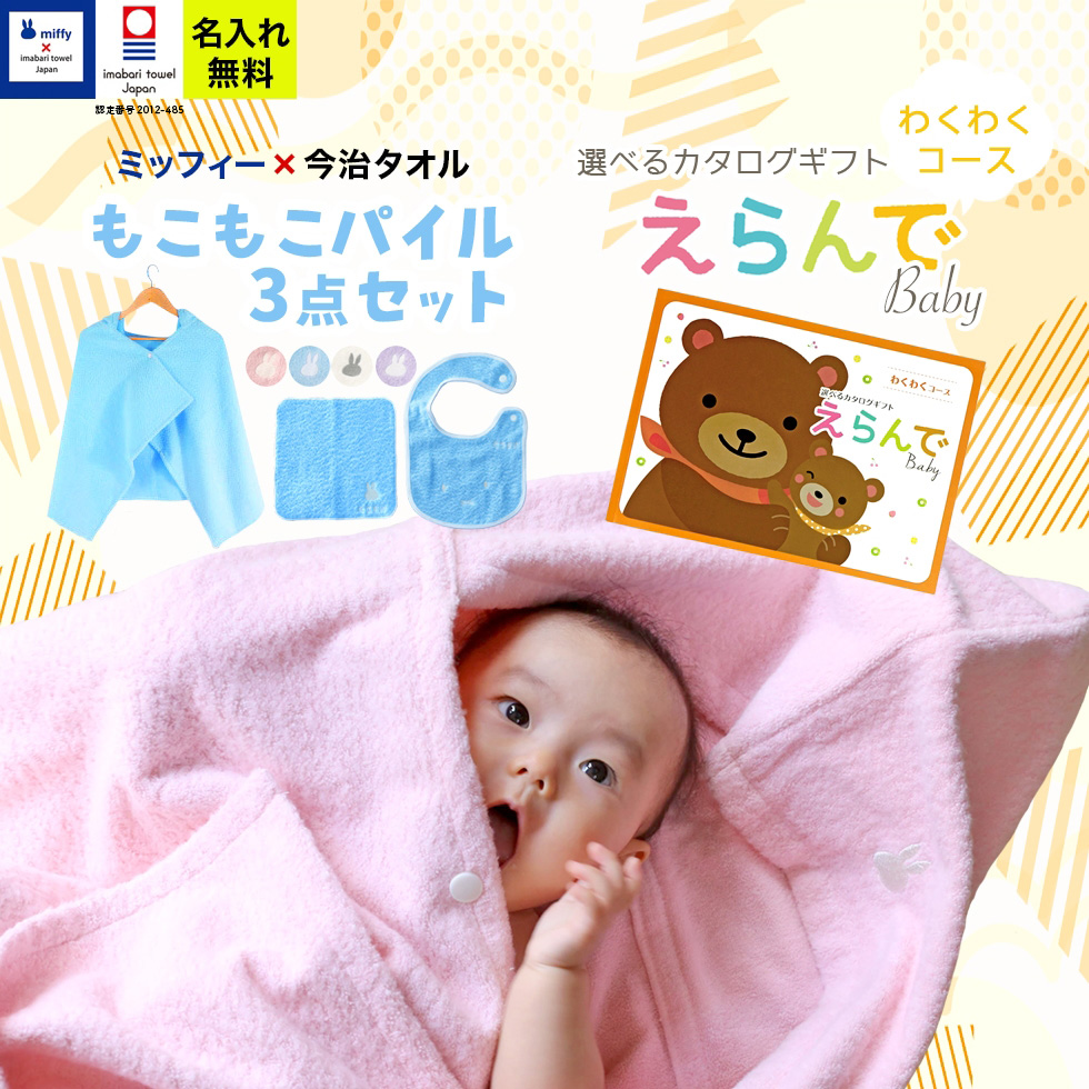 えらんでBaby わくわくコース &今治タオルミッフィー バスポンチョ スタイ ハンカチ セット 出産祝い カタログギフト メッセージカード付き 名入れ 名前入り