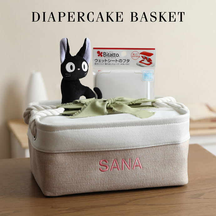 おむつケーキ 魔女の宅急便 ジブリ ジジ ラルフローレン 出産祝い ギフトセット バスケット ボックス 女の子 赤ちゃん くすみカラー ベビー バレンタイン