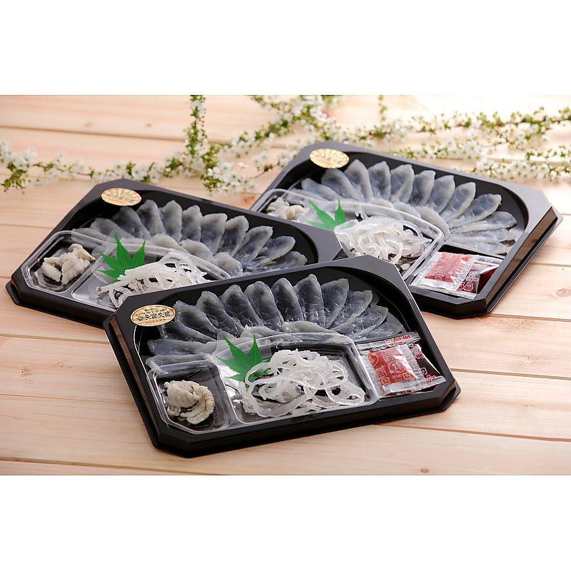 魚の宝庫豊後水道で育成された新鮮なとらふぐを職人技で1枚1枚丁寧に盛り付けました。サッパリとポン酢、もみじおろしでお召し上がりください。3皿に小分けしてお届けします。※この商品は、メーカーから直送にてお客様へお届けいたします。「代金引換」「ラッピング」「メッセージカード」は、ご利用頂けません。 誕生日プレゼント 結婚祝い 出産祝い 内祝い 退職祝い 長寿祝い 入学祝い 就職祝い 記念品 に!