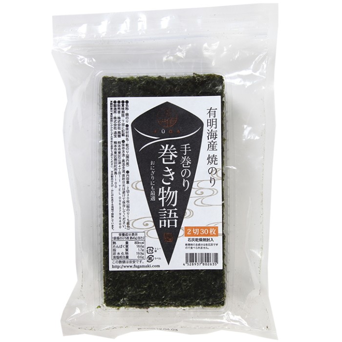 有明海産の焼のりを、手巻ずしやおにぎりに最適な2切サイズにカットしました。