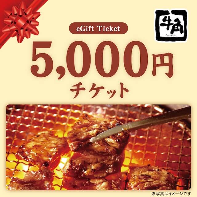 ・「牛角」全店でご飲食代金5,000円分としてご利用いただけます。