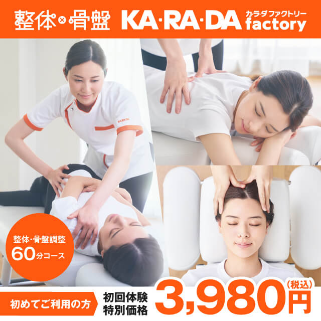 整体・骨盤調整コースで頭の土台である首と、身体の土台である骨盤を中心に、全身の骨格にアプローチすることで身体のコンディションを根本からケアする。それが、カラダファクトリーの整体・骨盤調整です。