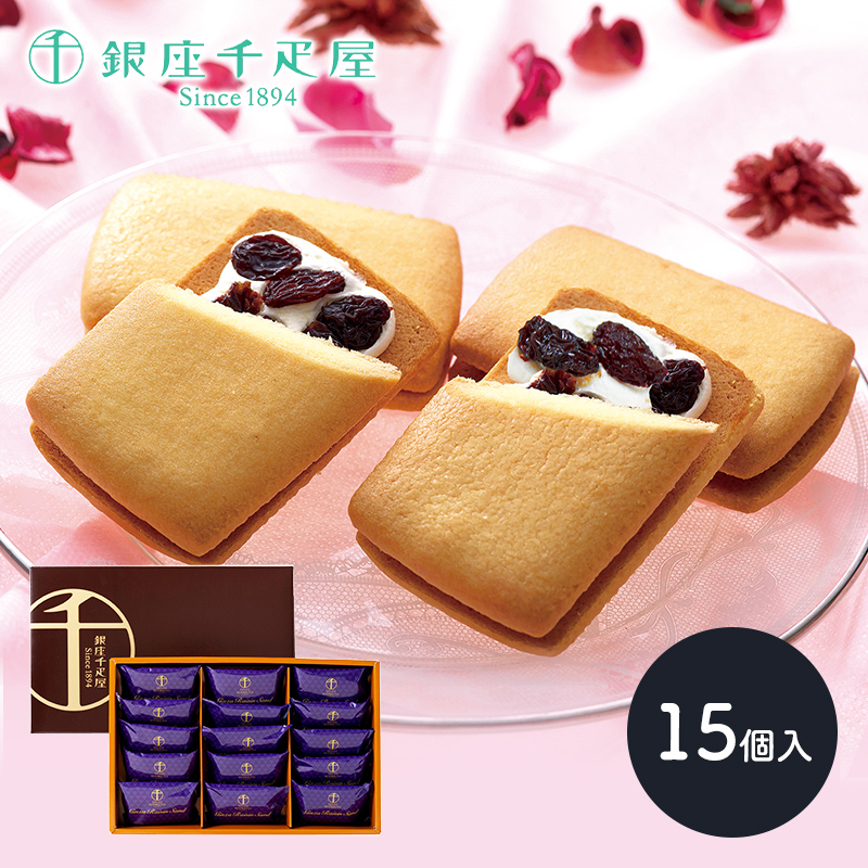 お年賀 2026 スイーツ 銀座千疋屋 レーズンサンド 15個 洋菓子 焼菓子 ギフト 高級 お菓子 フルーツ お取り寄せ お祝い 内祝い 送料無料 SK144 御年賀