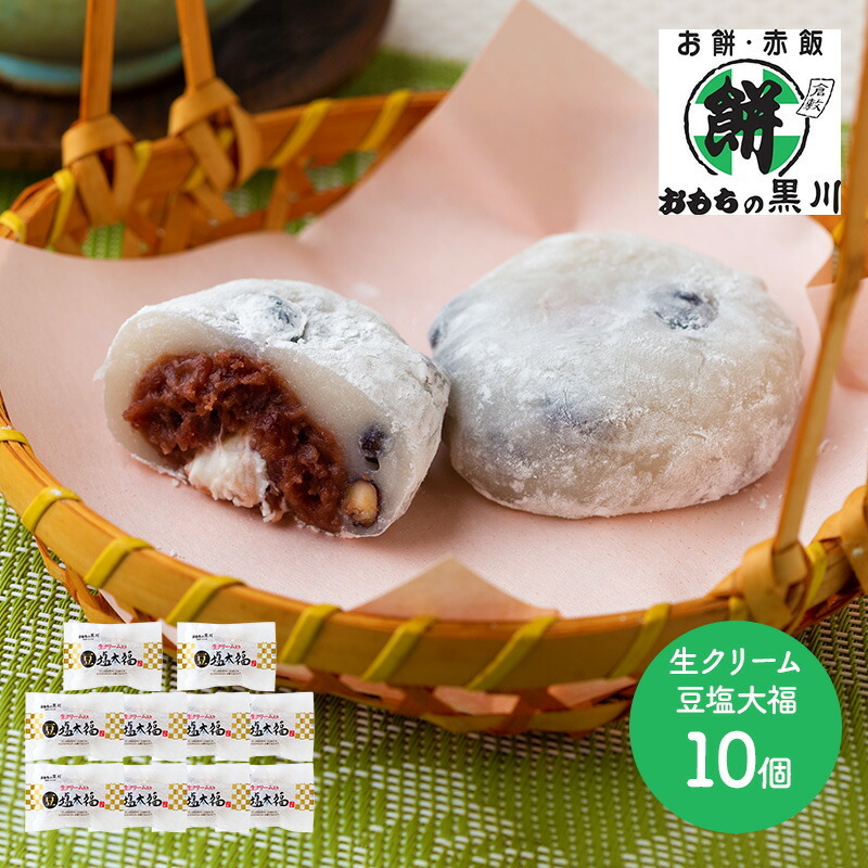 バレンタイン 2026 スイーツ 岡山 大正9年創業 おもちの黒川 豆塩大福 10個 和菓子 大福 もち 贈り物 ギフト プレゼント 還暦 快気祝 送料無料 SK2014