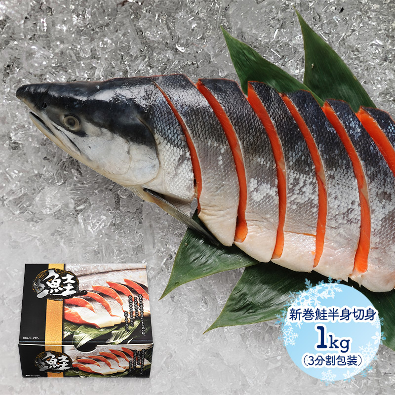 2025/11/1-2026/1/31お届け 北海道産 新巻鮭半身切身 1kg 3分割真空 さけ サケ 鮭 魚 切身 お取り寄せグルメ 切り身 送料無料 SN6002-050097