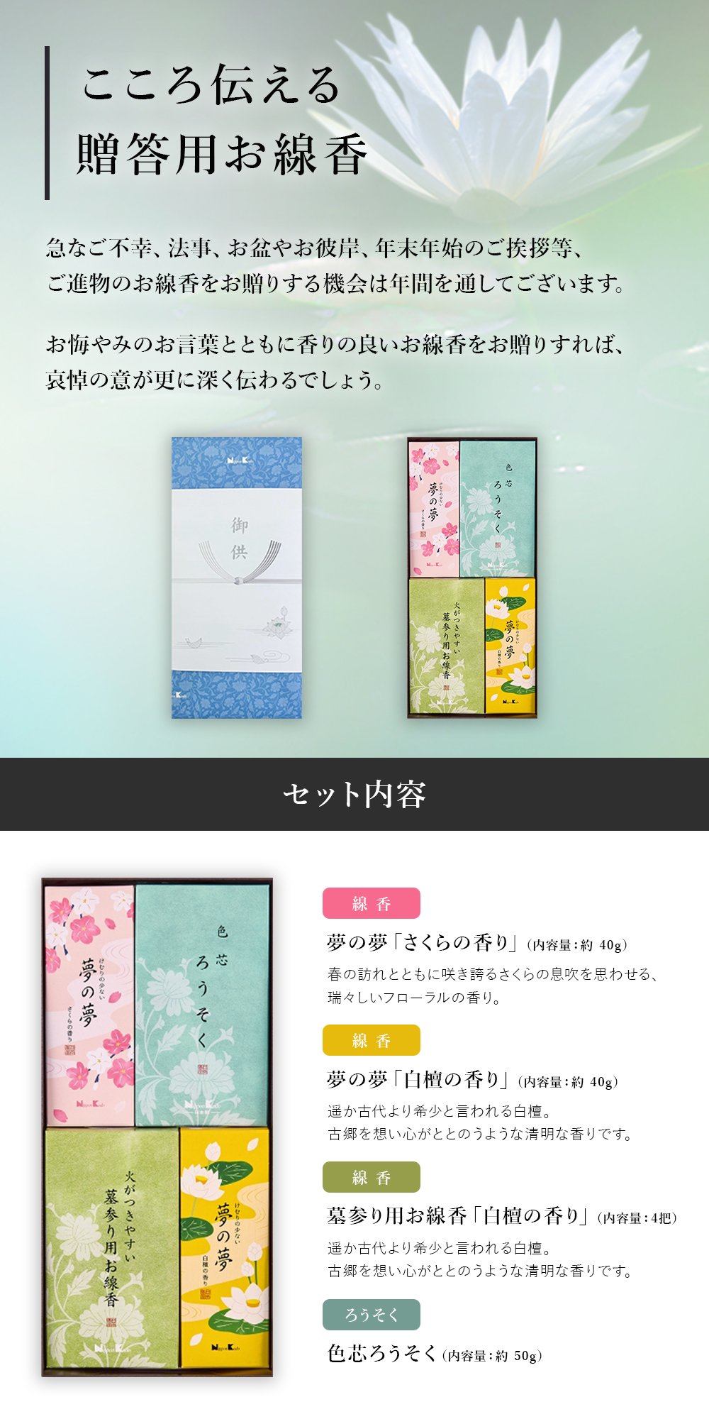 お線香・ローソクをセットにしたご贈答用お線香です。