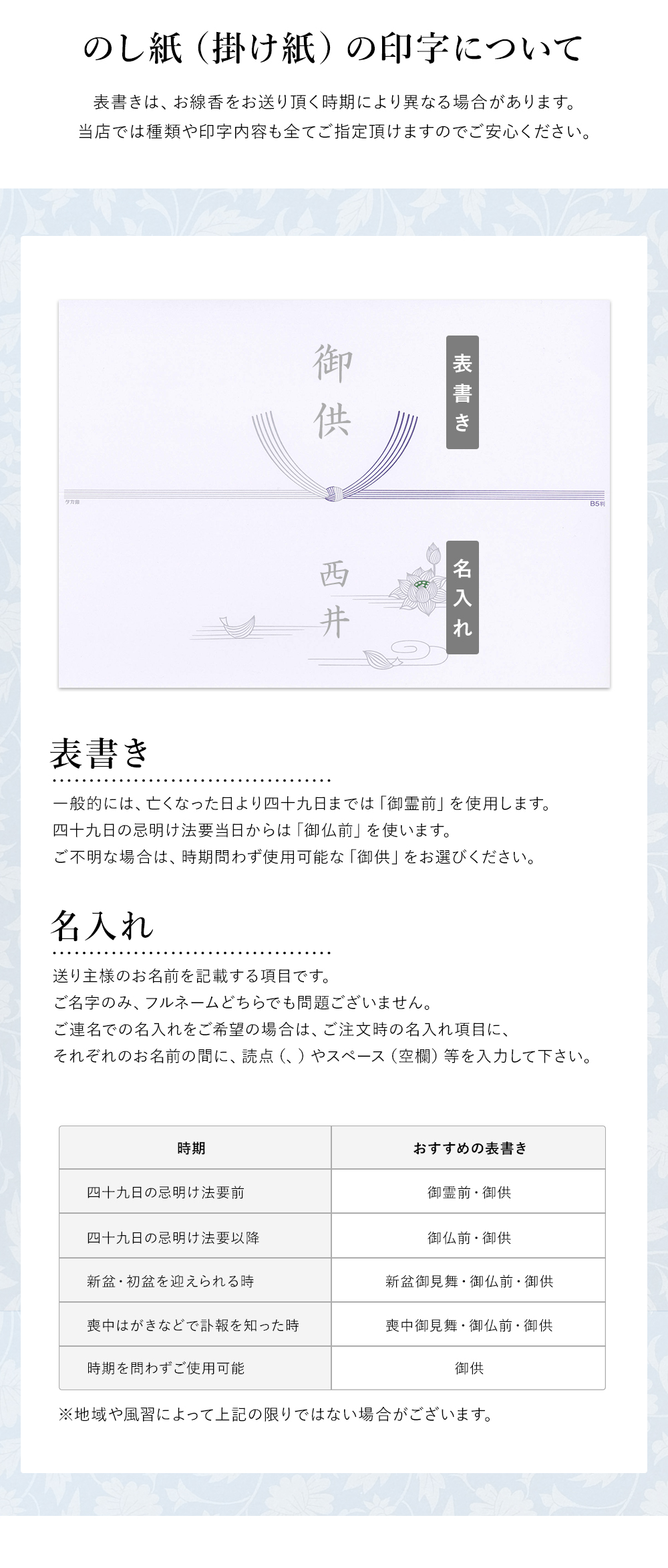 御供 お供え 御供え 御仏前 ご仏前 御霊前 ご霊前 お盆 初盆 新盆 法要 年忌 回忌 一周忌 三回忌 七回忌 お彼岸 進物 贈答 供養 喪中見舞い 喪中お見舞