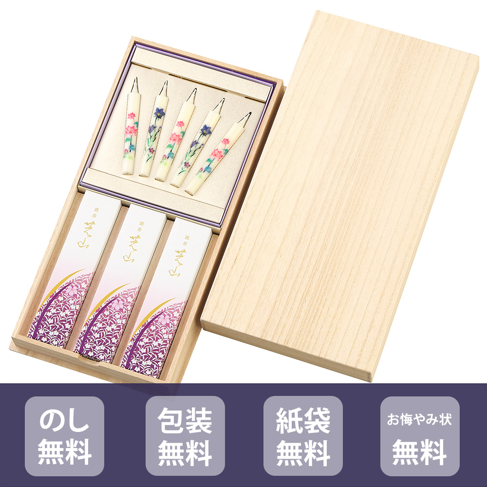 線香 ギフト お供え 日本香堂 銘香芝山 桐箱絵ろうそくセット 65019 のし包装対応 送料無料 御供 贈答 進物 法要 御仏前 御霊前 初盆 新盆 喪中 掛け紙 ▲(sa)