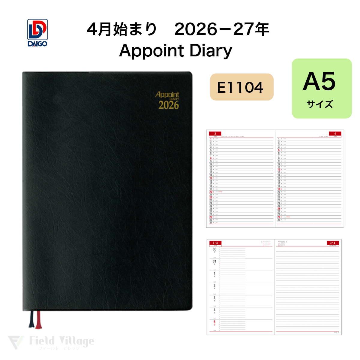 ダイゴー 2026-27年4月始まり E1104 ブラック 215×153×13mm A5 26-27 アポイント デスク A5 1W+横罫★