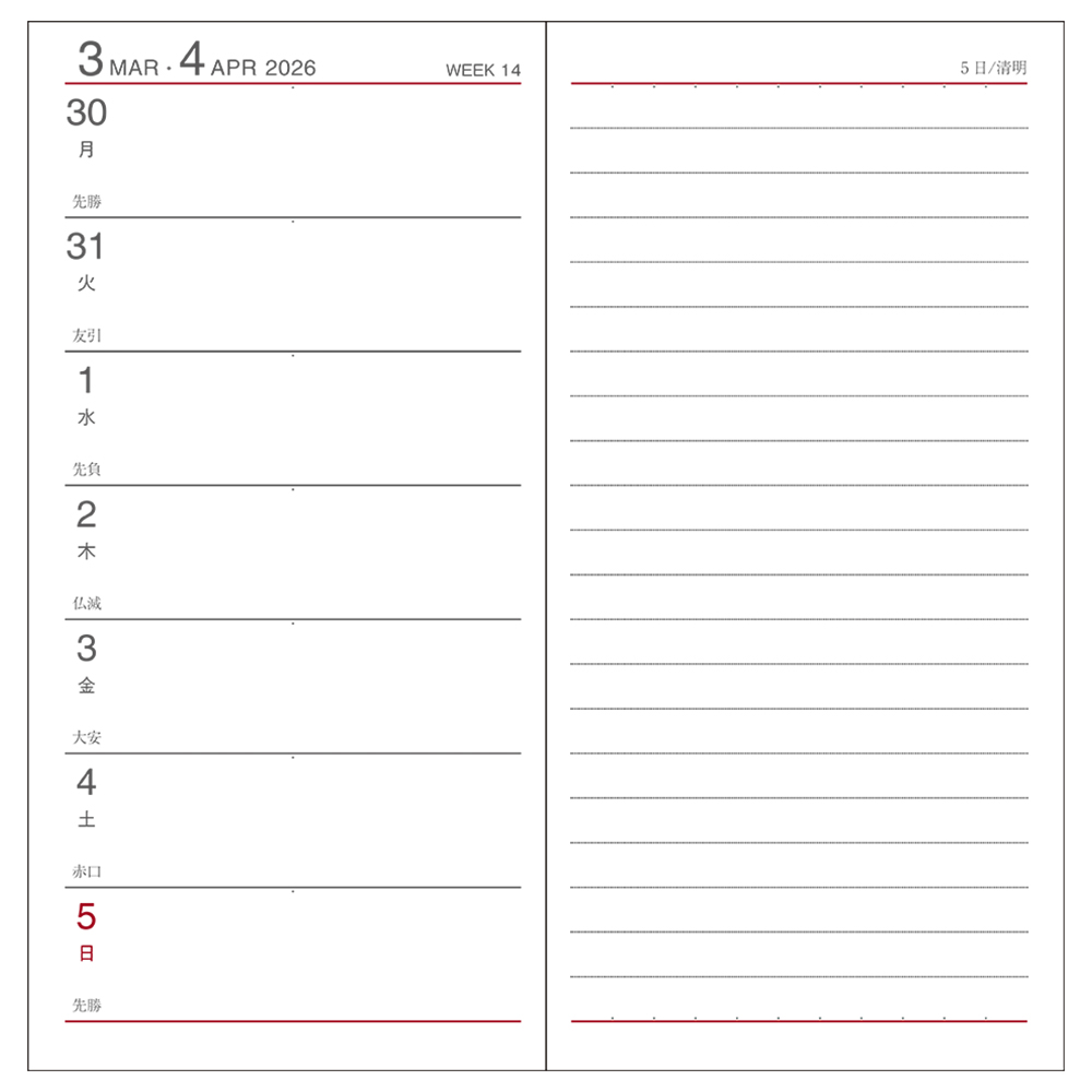 ■期間(週間ページ) : 2026年4月〜2027年3月