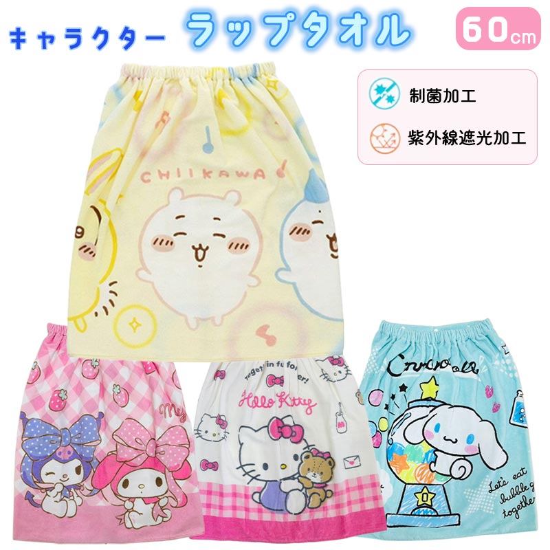 60cm丈巻きタオル マキタオル ラップタオル キャラクター こども キッズ ベビー 海 お風呂 プール タオル ちいかわ サンリオ