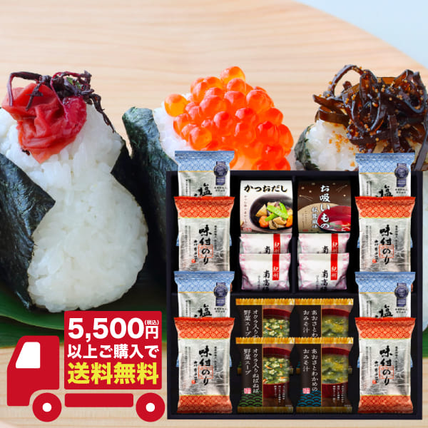 〇商品説明:有明海産海苔に梅だれの仕上げをした相性抜群の「南高梅のり」に塩だれの仕上げをした相性抜群の美味しい「塩のり」、国産のりを100%使用・保存料無添加で塩分を控えた甘口タイプの海苔佃煮、本場紀州産南高梅の果肉たっぷりの最高グレードを使用した、衛生的で使いやすく持ち運びに便利な個包装タイプの梅干しなど、食卓を彩る詰合せです