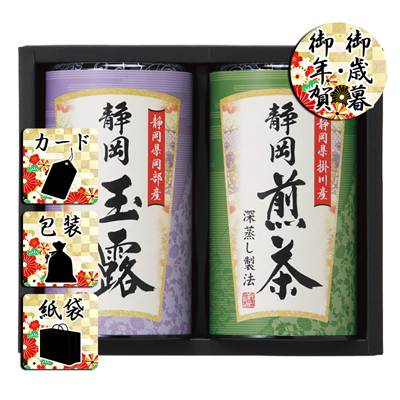 濃厚で苦味の少ない静岡深蒸し煎茶と玉露ならではのとろりとした優しい旨みの静岡玉露を詰め合わせました。