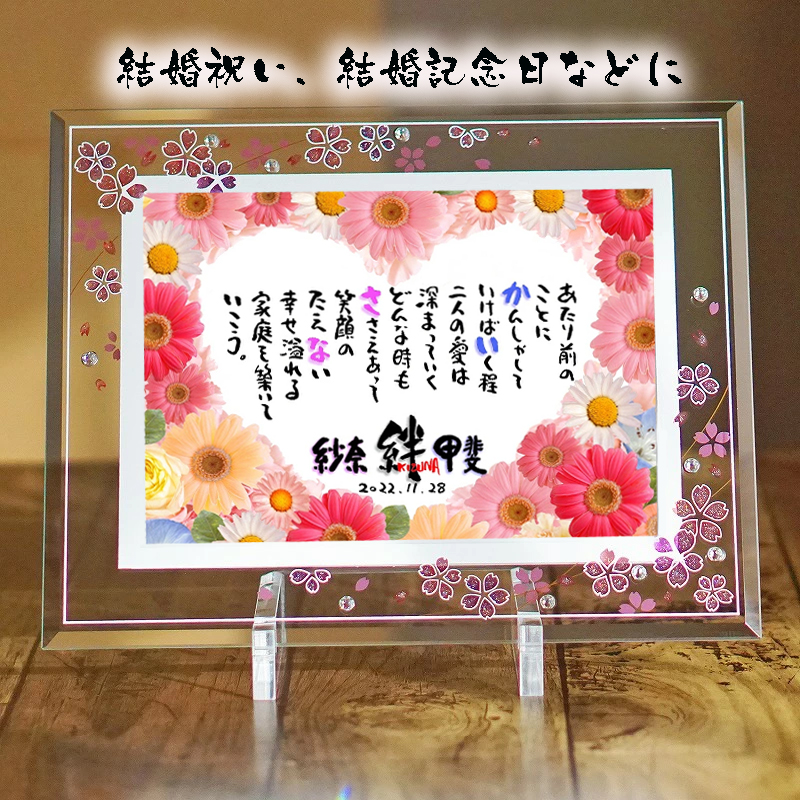 お名前ポエム 結婚祝い 結婚記念日 紙婚式 ウエディングなどのお祝いに 名前ギフト詩 名前詩の事前確認あり【二人の絆は永遠に】 【桜ガラスフレーム透明】