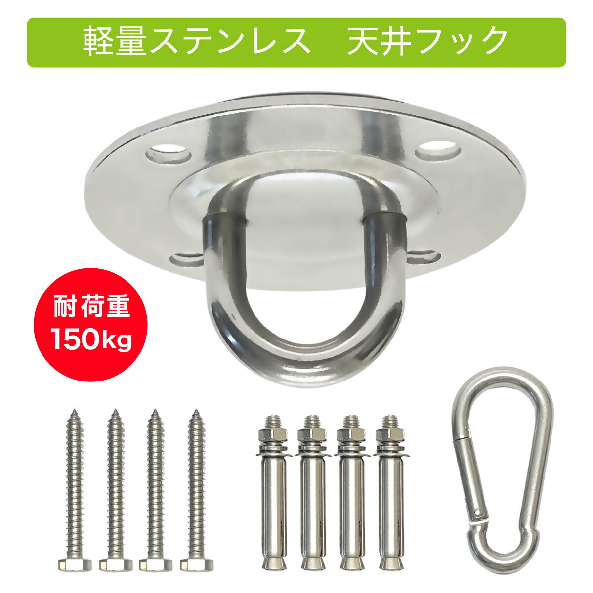 | 【送料無料★耐荷重150kg 】天井 吊り下げ フック 90mm 軽量 ステンレス 天井 壁 金具 マウントキット ハンモック チューブトレーニング ハンキングチェアー エアリアルヨガ 吊り金具セット 空中ヨガ エクササイズ エアロヨガ |
