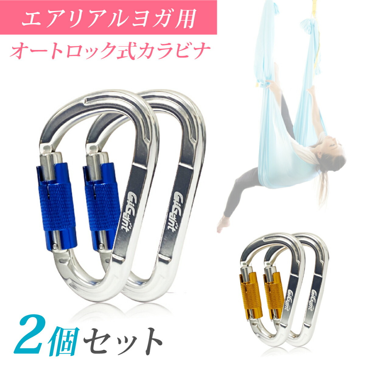 オートロックカラビナ 2個 D型 自動ロック CE認証 空中ヨガ エアリアルヨガ ハンモック 反重力ヨガヨガハンモック クライミング ロープ キャンプ