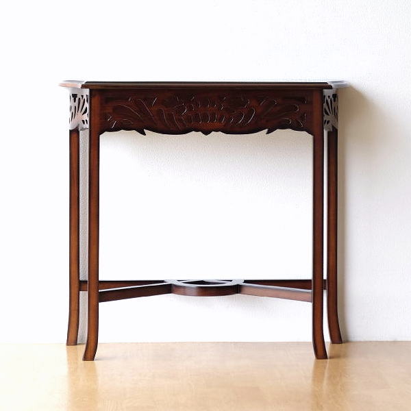 コンソールテーブル アンティーク 玄関 スリム 花台 木製 無垢材 アジアン レトロ 薄型 完成品 マホガニーコンソール透かし彫り