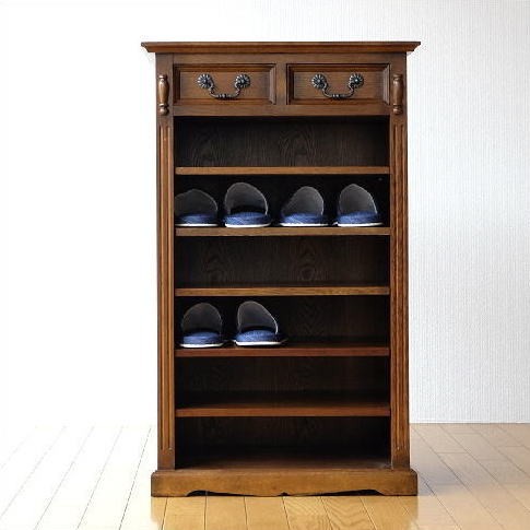 [ オーク材 ナラ材 高さ90cm スリッパスタンド スリッパ収納棚 棚付き 棚式 縦型 10足 12足 6段 無垢 クラシック クラシカル ヨーロピアン ヨーロッパ 洋風 お洒落 アンティーク調 アジアン ウッド 輸入家具 木目 収納家具 引き出し収納付き 上質 高級感 ブラウン 完成品 ]