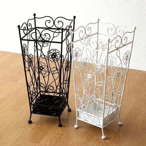 [ 傘立て おしゃれ アイアン アンティーク かわいい エレガント 四角 スクエア 玄関 コンパクト ヨーロッパ ヨーロピアン アンティーク風 アンティーク調 カフェ ナチュラル 花 フラワー かさ立て 傘たて ホワイト ブラック アイアン傘立て ]