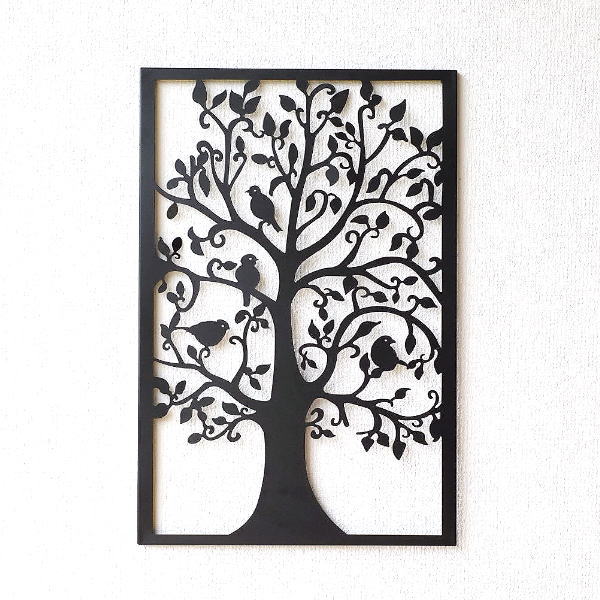 壁飾り アイアン おしゃれ 壁掛け ツリー バード アートパネル アートフレーム モノトーン アイアンの壁飾り ツリー&バード