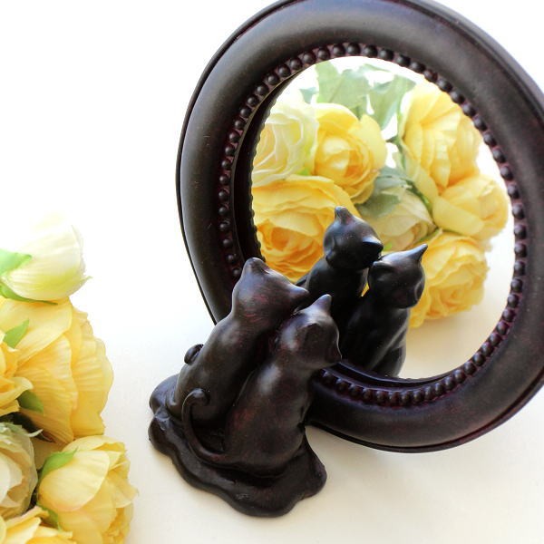 鏡 卓上ミラー 猫 ネコ ねこ 雑貨 置物 置き物 オブジェ グおしゃれ かわいい レトロ アンティーク スタンドミラー 仲よしキャットミラー