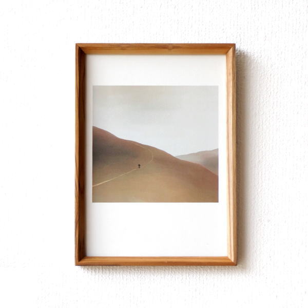 壁にサイズ違いのフレームを並べて飾ると